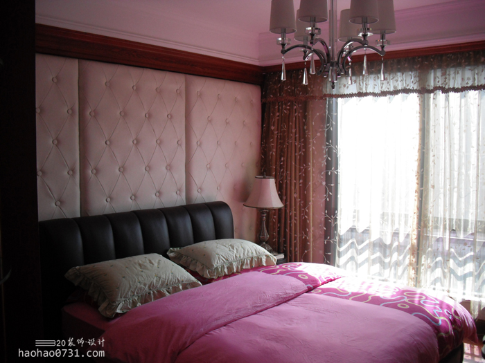 设计理念:三房户型,原木门,原木家具;大理石和茶镜与实木线条配合使用,加上大面积的墙纸,使整体空间富有档次;165*165仿古砖斜贴,石膏线条,增加细节。